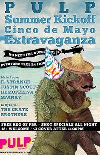 PULP is Tampa’s original underground dance party. Check your drama and your baggage at the door. This party is all about loving the music and lovin’ up on your friends. Expect to be schooled with the newest electro, dubstep, disco, bmore, fidget, wobble, baile, and remixes by Justin Scott, E.Strange, Hemo Feelya, The Crate Brothers and Florida’s Dance Music Scout Master PAULY CRUSH.