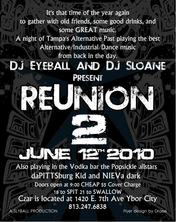 If you danced back in the 90’s to Alternative, Industrial, Progressive or anything played at the clubs in Tampa or St. Pete or just went out to have a drink and some fun, this is for you to meet old friends.